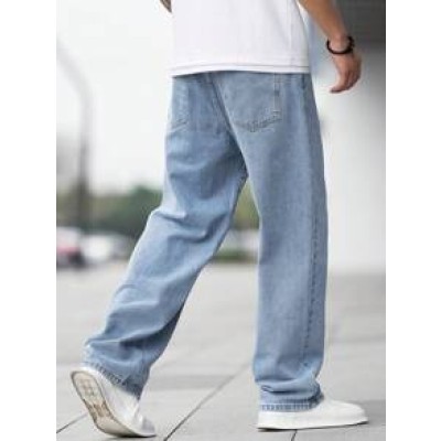 SHEIN Teen Boy Fashion Casual Vintage Designed Wash Water Blue Loose Straight Leg Jeans, Thanksgiving Costume Dailywear And Fall/Winter